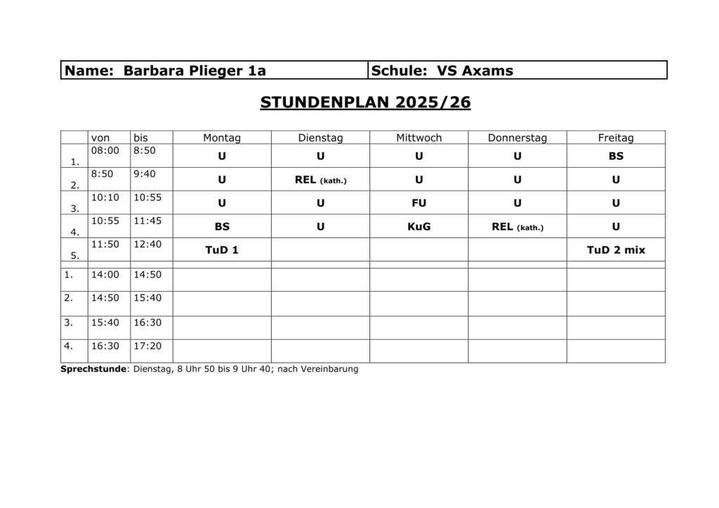 Stundenplan 2025/26